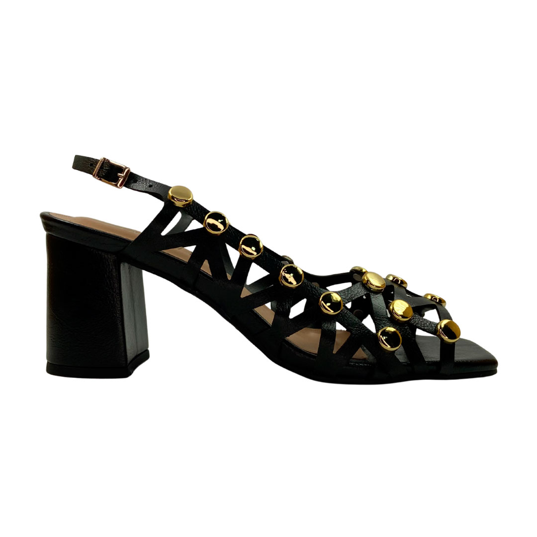 (1947683)Sandália Salto Bloco Com Tachas Preto