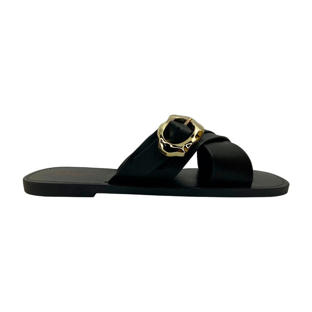 Moderna e super versátil, essa rasteira traz tiras largas cruzadas em X sobre o pé, garantindo conforto e estilo em cada detalhe. O destaque fica por conta da maxi fivela dourada, que adiciona um toque sofisticado e fashionista ao modelo. Ideal para compor produções casuais ou até looks mais arrumadinhos, é aquela sandália curinga que combina com tudo!