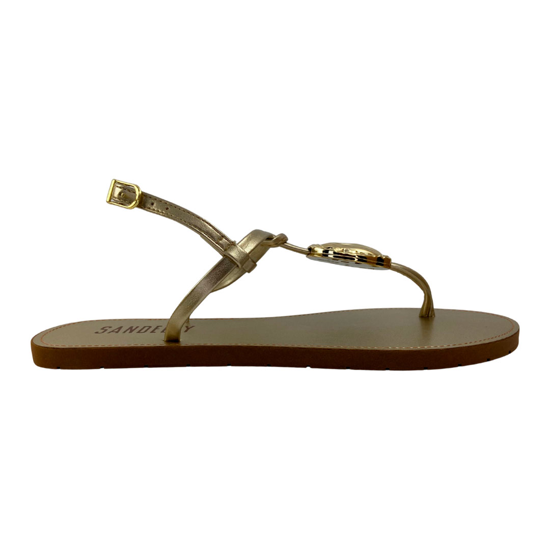 (420 C309) Sandália Rasteira Detalhe Ouro Light