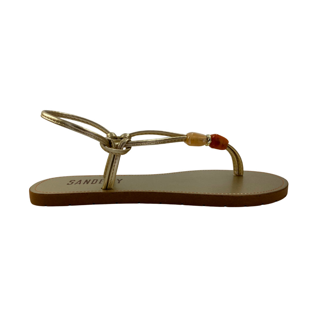 (420 C348) Sandália Rasteira Detalhes Ouro Light