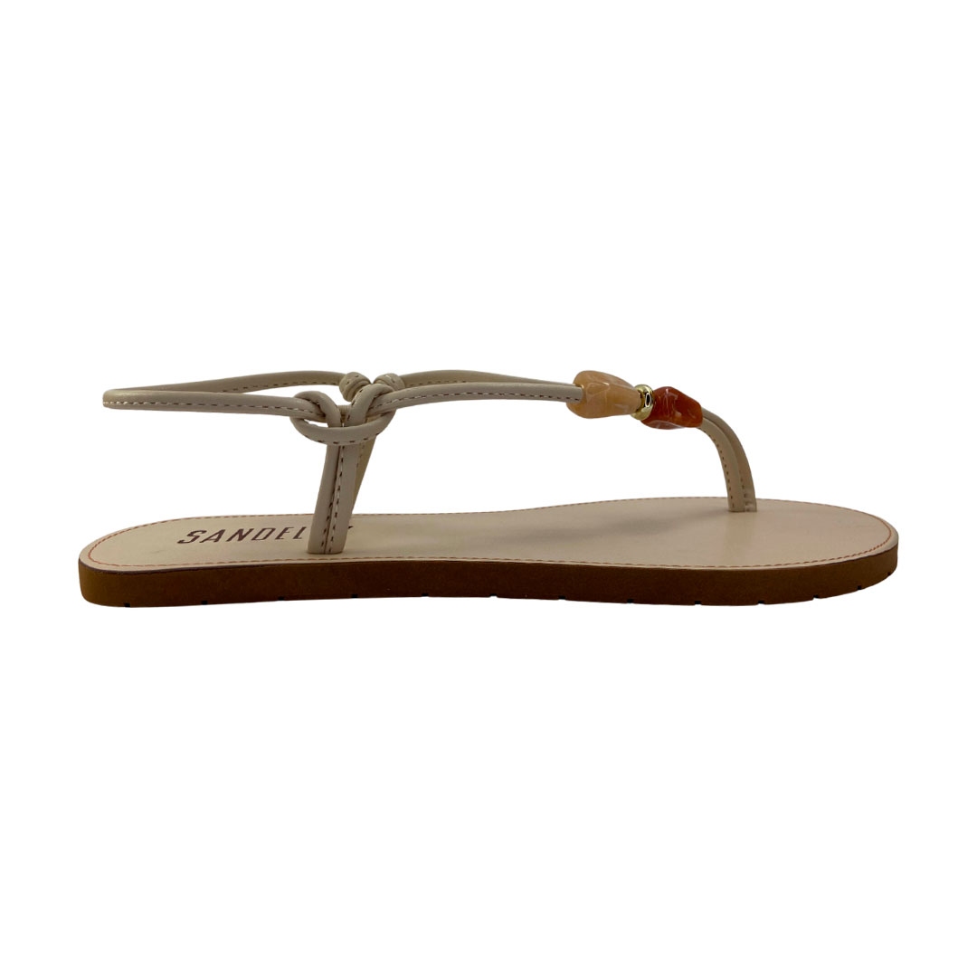 (420 C348) Sandália Rasteira Detalhes Panna Cota