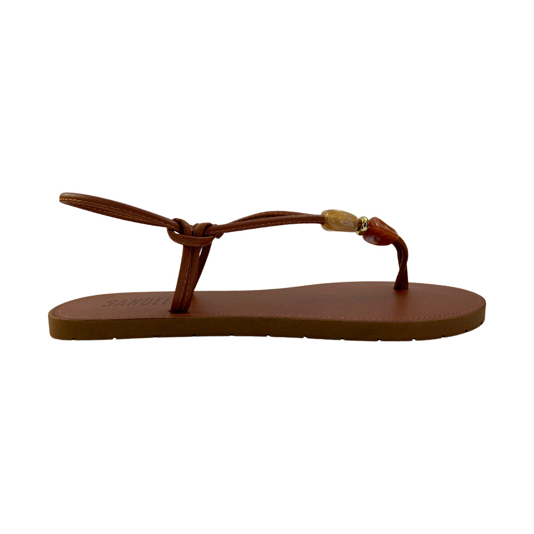 (420 C348) Sandália Rasteira Detalhes Whisky