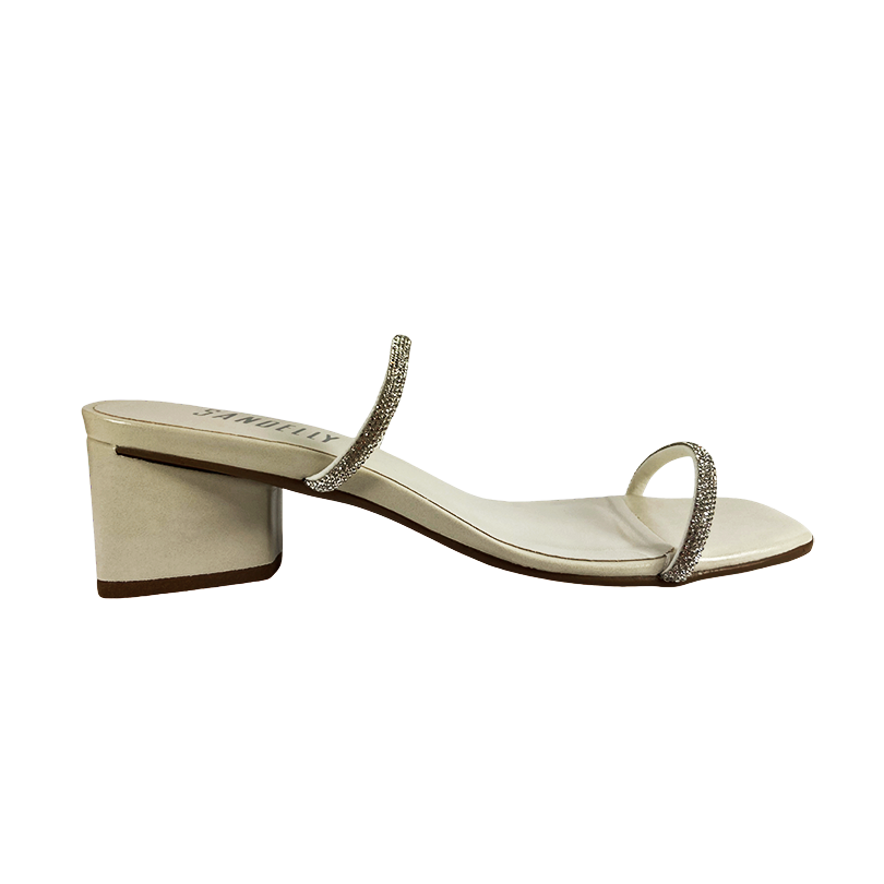 Brilhe sem esforço! Essa sandália é perfeita para quem ama um visual sofisticado com um toque de glamour. Com tiras finas revestidas em brilhos delicados e salto bloco baixo, ela une conforto e estilo em cada passo. O bico quadrado e o acabamento metalizado trazem aquele ar moderno que valoriza qualquer look, do vestido de festa ao jeans com elegância!