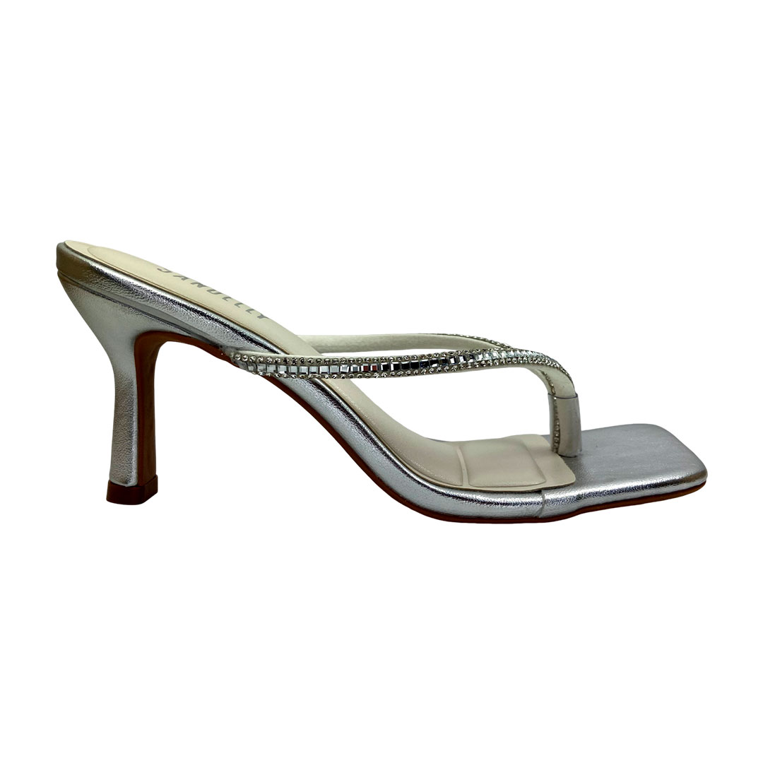 Glamouroso e irresistível, este tamanco traz a combinação perfeita entre delicadeza e sofisticação. A tira em V, fina e elegante, é adornada com aplicações brilhosas que iluminam o visual e adicionam um toque luxuoso ao caminhar. O salto fino alonga a silhueta e garante um charme extra, enquanto o acabamento metalizado eleva a modernidade do modelo. Ideal para compor looks noturnos, produções festivas ou qualquer ocasião que peça um toque de luz e estilo.