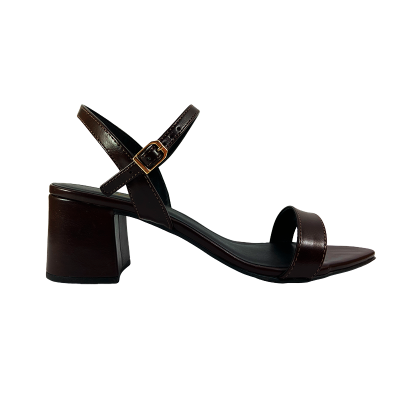Sandália salto bloco, possui bico folha. Apresenta tira horizontal sobre os dedos e duas tiras que envolvem delicadamente o tornozelo, com fechamento em fivela lateral para ajuste seguro e elegante.