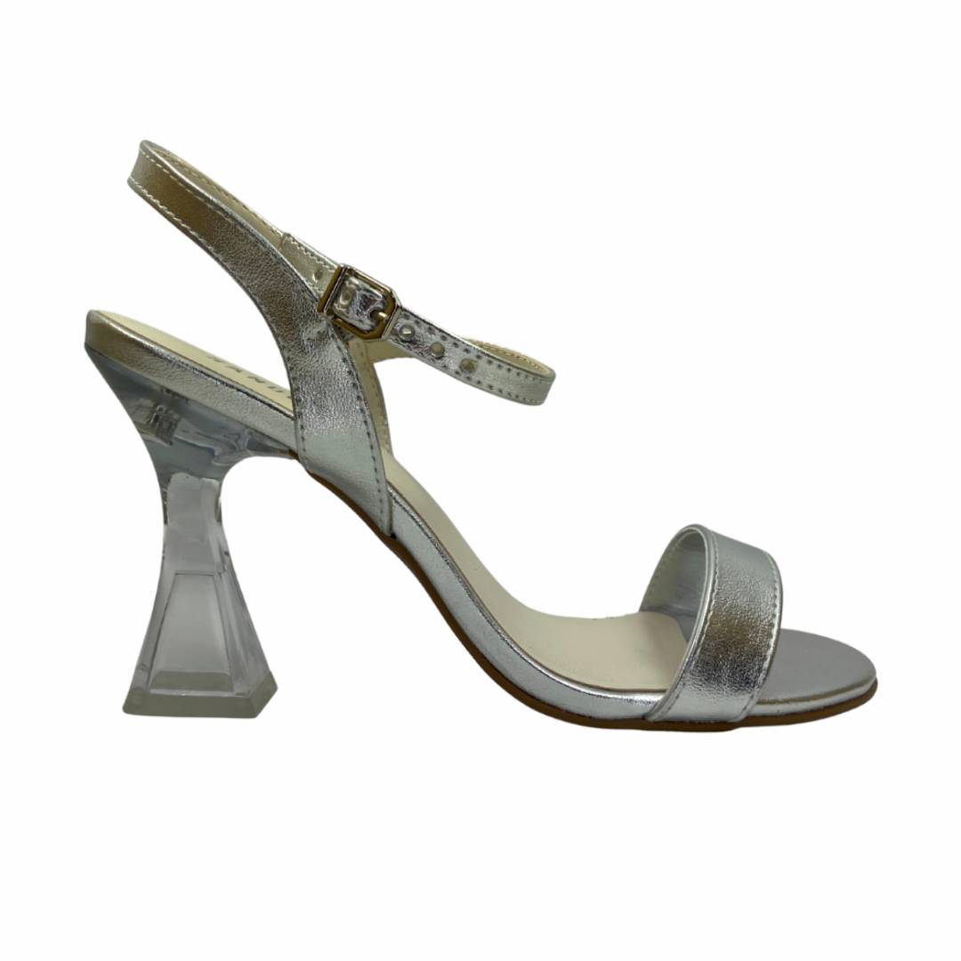 (5406-12251) Sandália Metalizada Com Salto Geométrico Em Acrílico Prata
