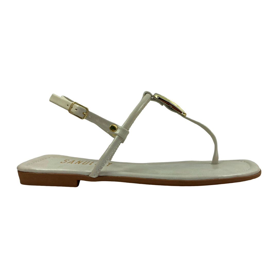 (702611454) Sandália Rasteira Tiras Em T Detalhe  Off White