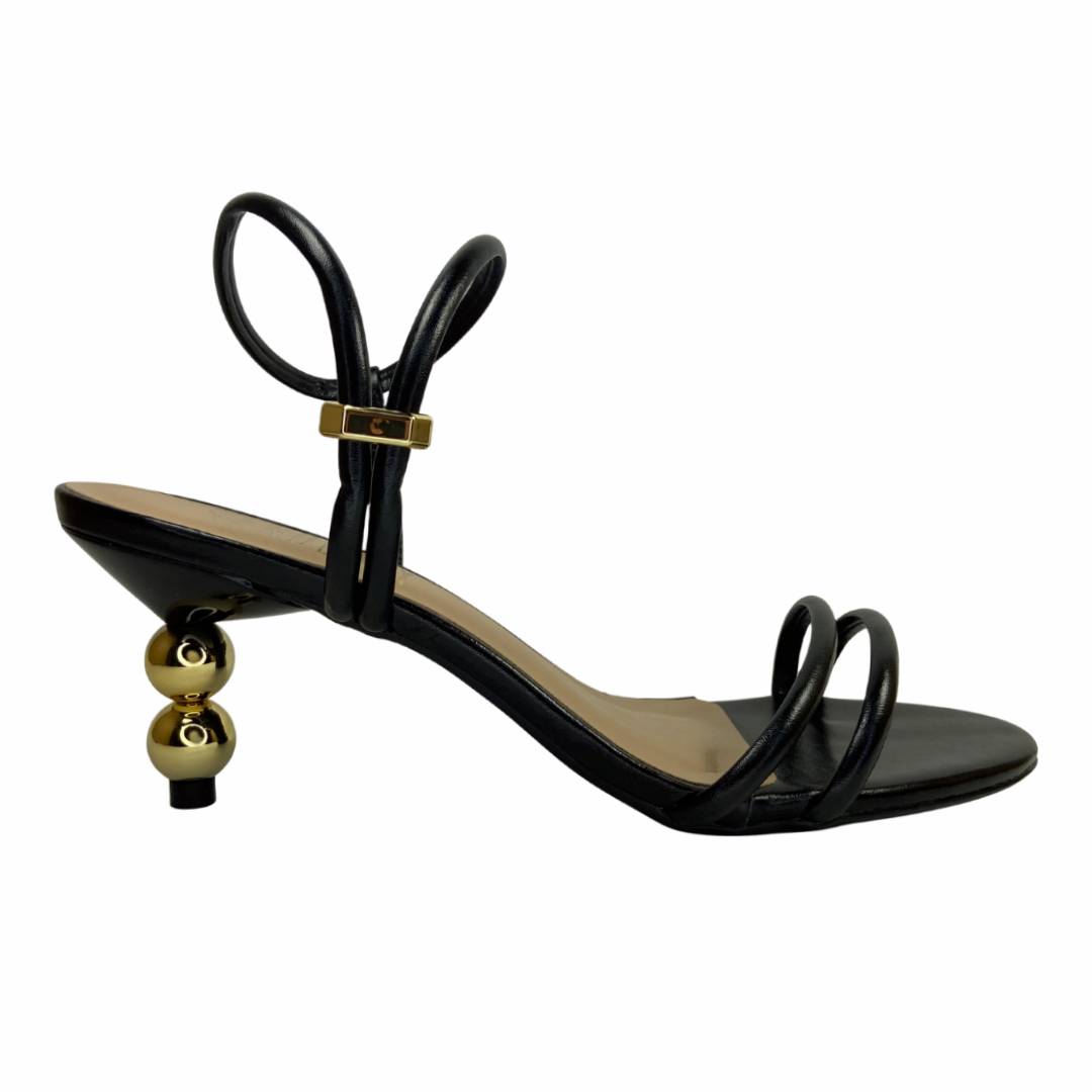 (7157-21184) Sandália Salto Taça Com Detalhes Esferas Metalizadas Preto