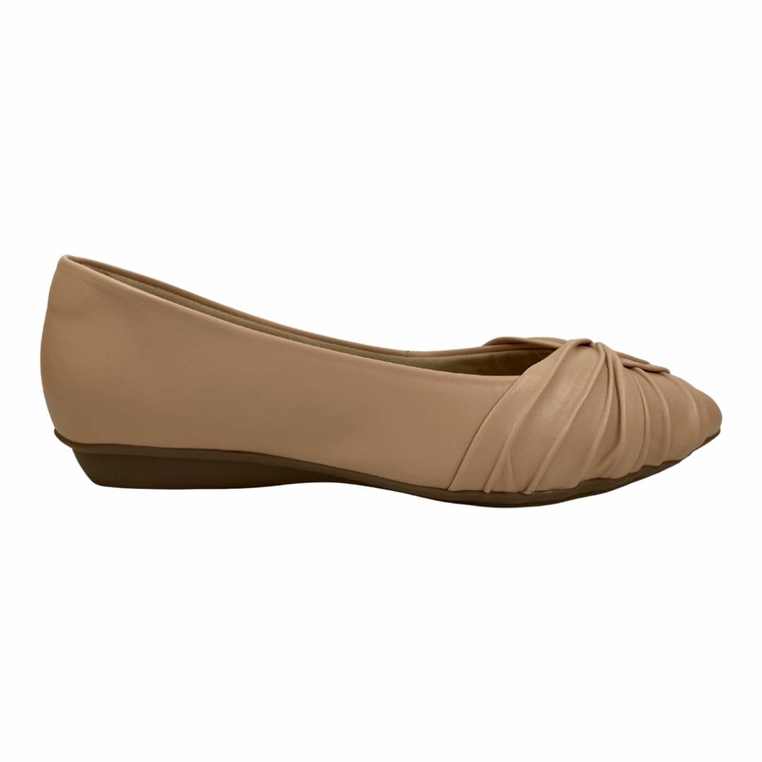 Sapatilha sofisticada e atemporal, ideal para quem busca praticidade no dia a dia sem abrir mão de um toque elegante. O modelo possui design de bico fino, perfeito para composições modernas e versáteis. O grande destaque está no cabedal com acabamento drapeado e franzido, formando um nó central delicado que adiciona charme e personalidade ao modelo. As tiras sobrepostas criam um efeito visual elegante e diferenciado, elevando a sapatilha a um estilo clássico com toque fashion. A estrutura fechada proporciona calce seguro e confortável, enquanto a palmilha macia garante bem-estar durante o uso prolongado. Leve e prática, é uma escolha perfeita para acompanhar desde looks casuais até produções mais arrumadas.