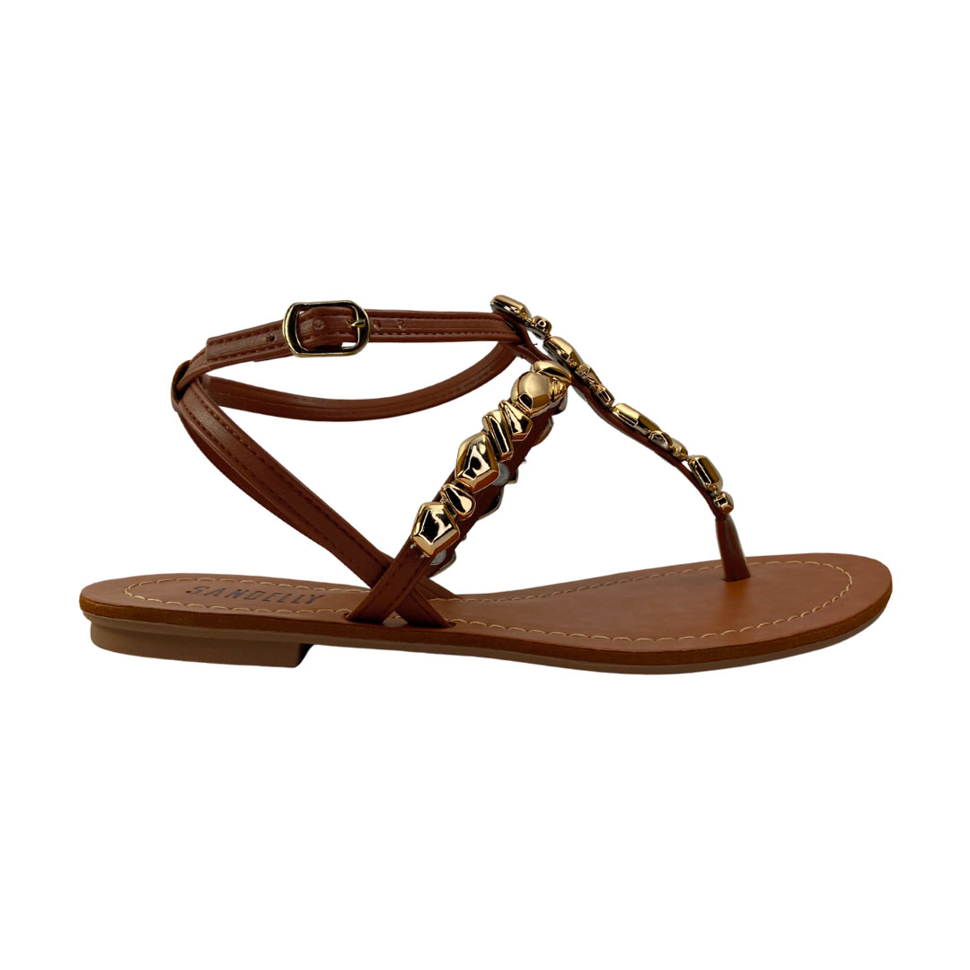 (8153-7000) Sandália Rasteira Detalhes  Caramelo