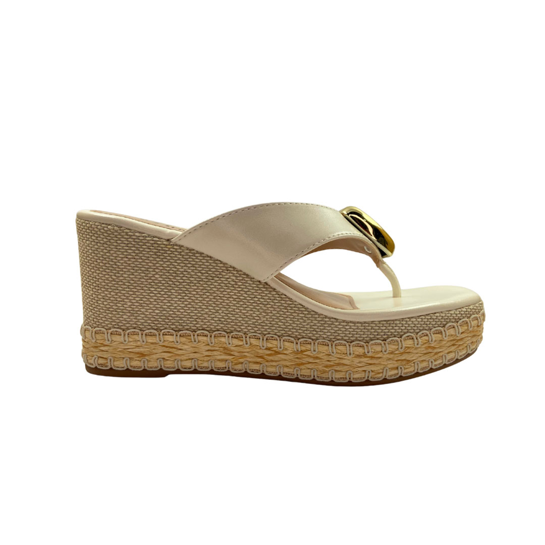 O equilíbrio perfeito entre conforto e sofisticação. Com salto anabela médio revestido em corda, esse modelo traz leveza e um toque rústico moderno. A tira larga no peito do pé ganha destaque com o detalhe metalizado dourado, que adiciona charme e elegância. Versátil e confortável, é a escolha certa para acompanhar suas produções do dia a dia até ocasiões mais especiais.