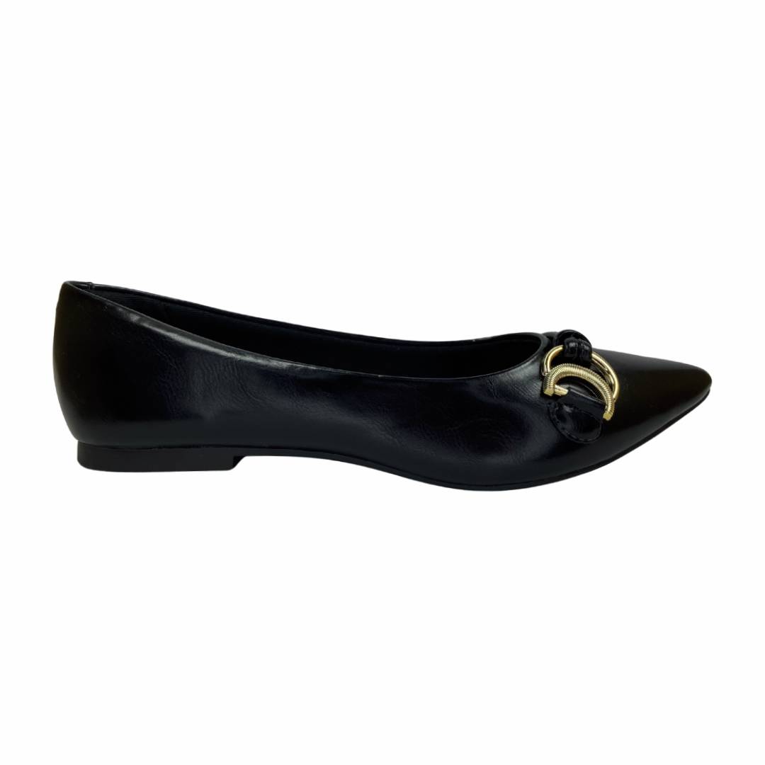 Elegante e versátil, essa sapatilha é perfeita para compor produções sofisticadas com conforto no dia a dia. O modelo possui bico fino, que traz um visual mais refinado e moderno. O destaque fica por conta do detalhe metálico dourado aplicado na parte frontal, agregando charme e um toque de sofisticação ao design minimalista. Confeccionada em material liso, conta com palmilha macia que proporciona maior conforto ao longo do uso. Ideal para trabalho, compromissos diários ou combinações mais alinhadas. Um modelo clássico, atemporal e fácil de combinar.