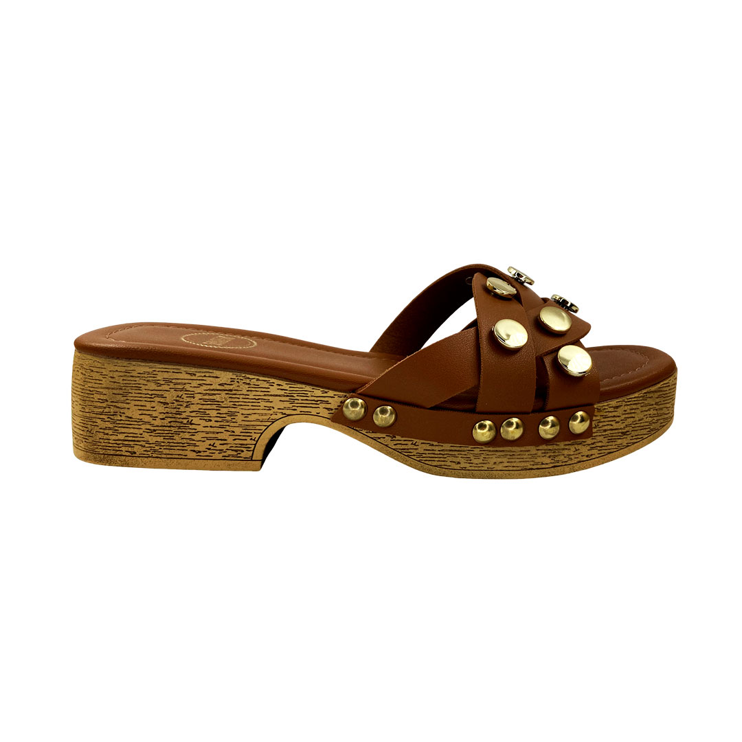 (8413-16282) Tamanco Tiras Cruzadas Aplicações Metalizadas Casca