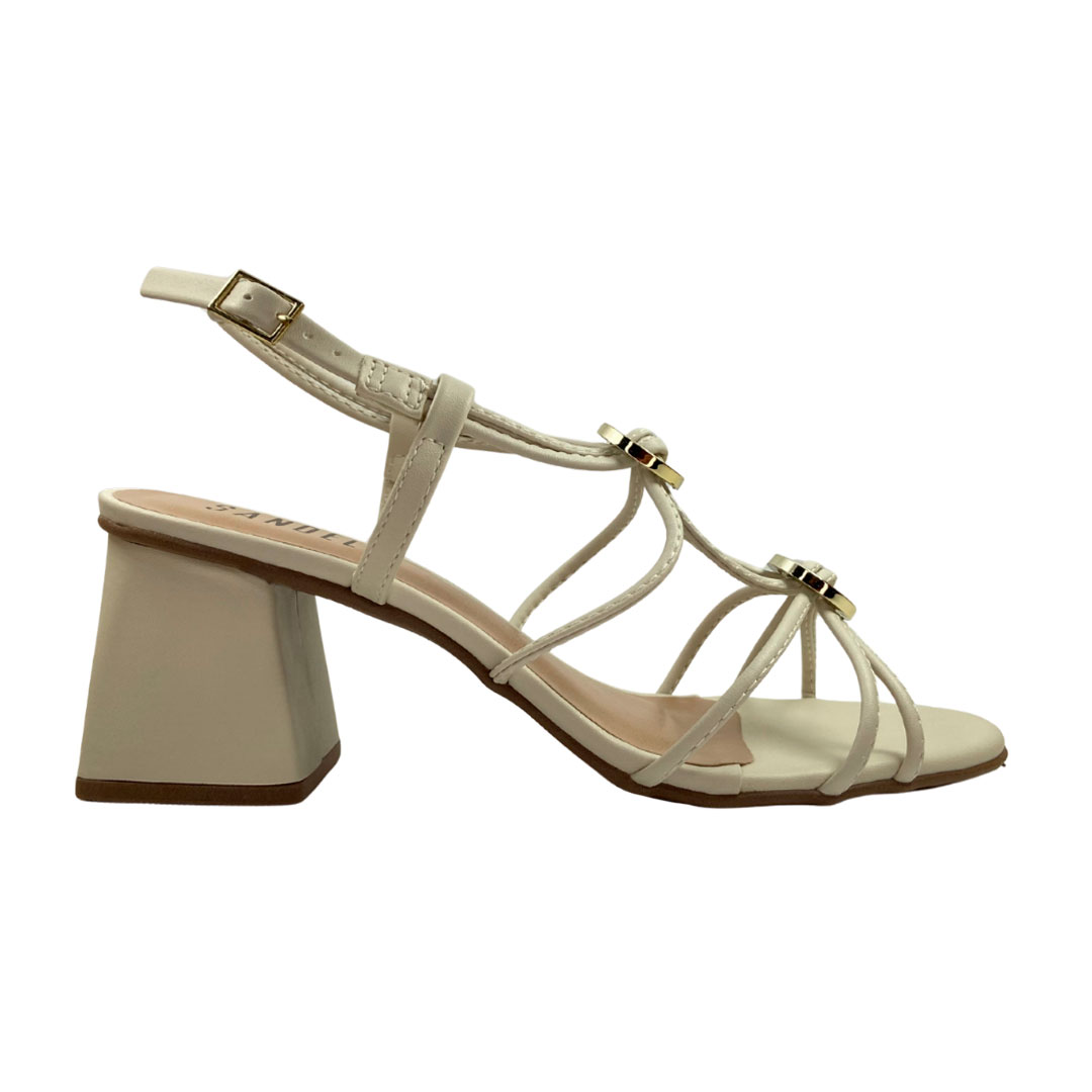(8422-90914) Sandália Salto Bloco Tiras E Detalhes  Off White