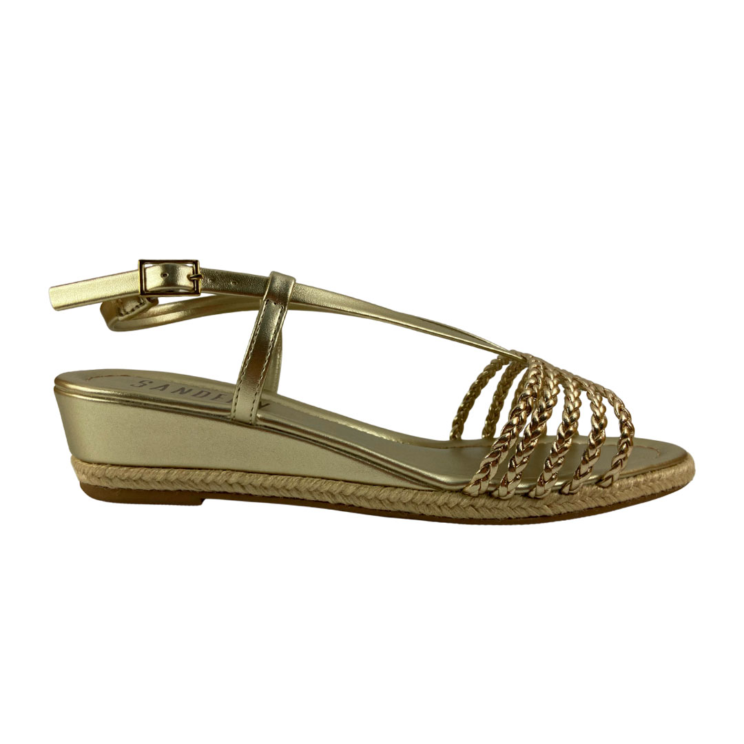 (8454-91351) Sandália Anabela Tiras Trançadas Ouro Light