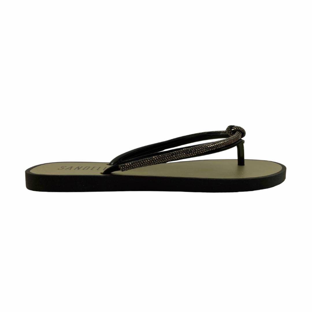 (8516-17041) Rasteira Com Tiras Finas E Aplicação De Strass Preto