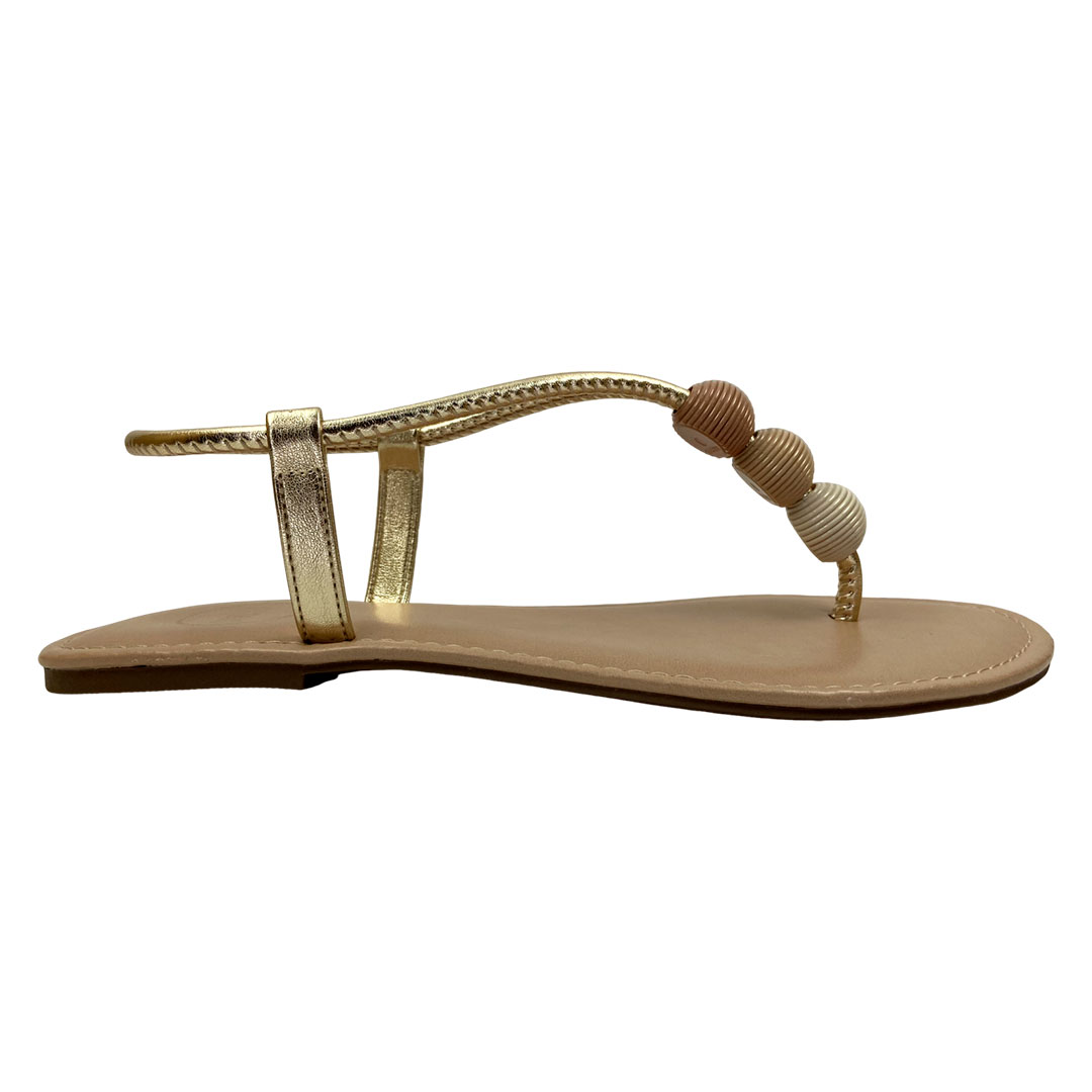 (95013) Sandália Rasteira Tira Central Detalhe Esferas  Champagne