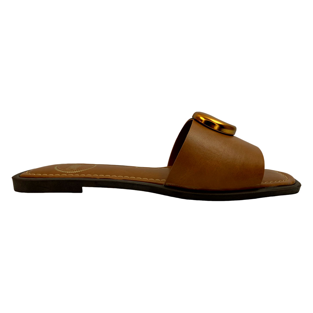 (951927) Rasteira Minimalista Detalhe Metálico Ambar
