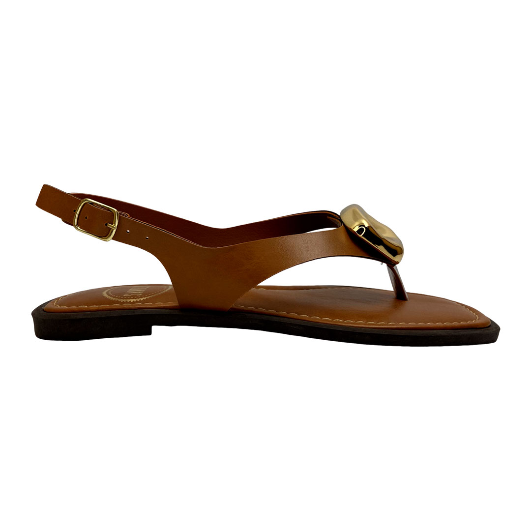 (951946) Sandália Rasteira Detalhe Metálico Central  Ambar