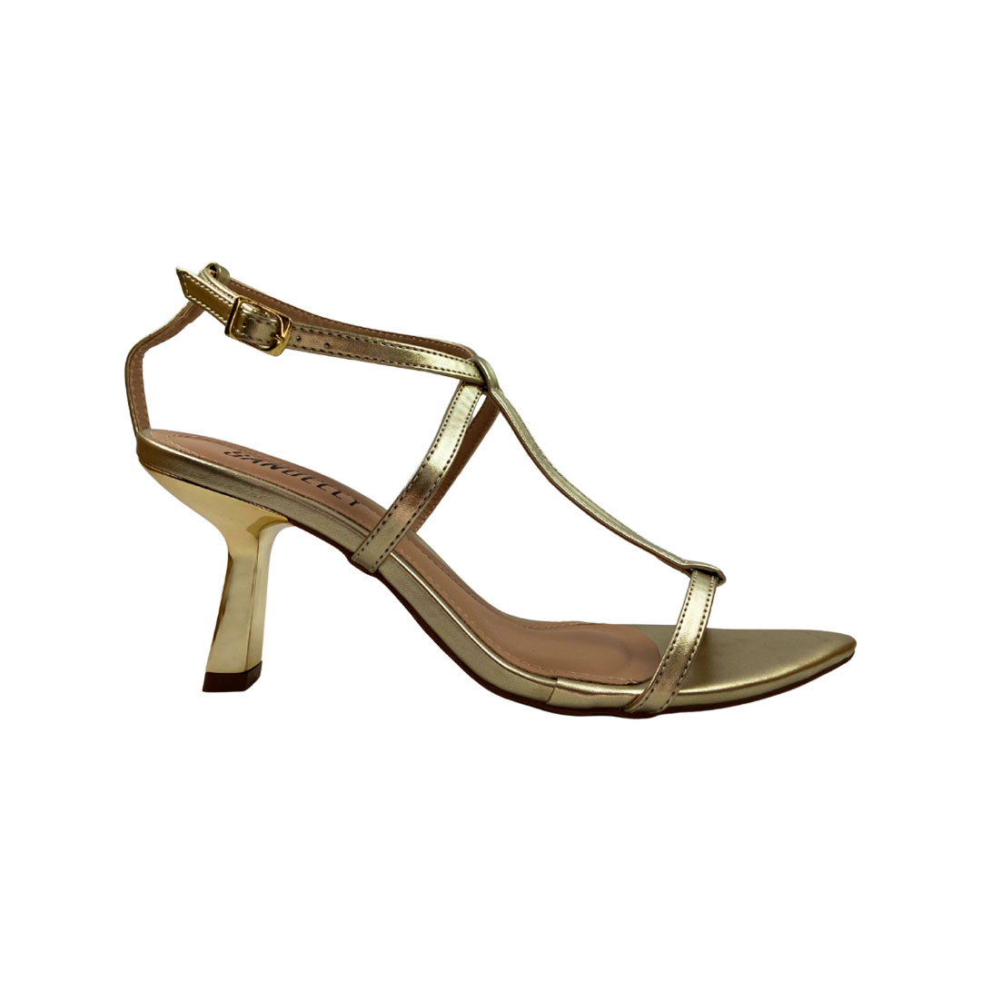 (9572-2986) Sandália Feminina Salto Fino Dourado  Ouro Light