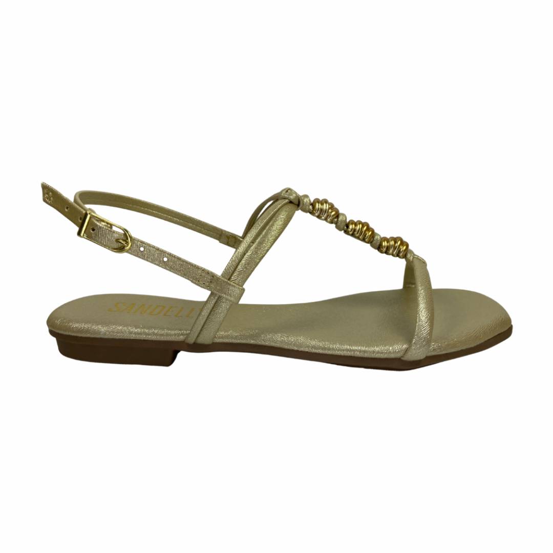 (An292) Sandália Rasteira Detalhes Metalizados Ouro Light