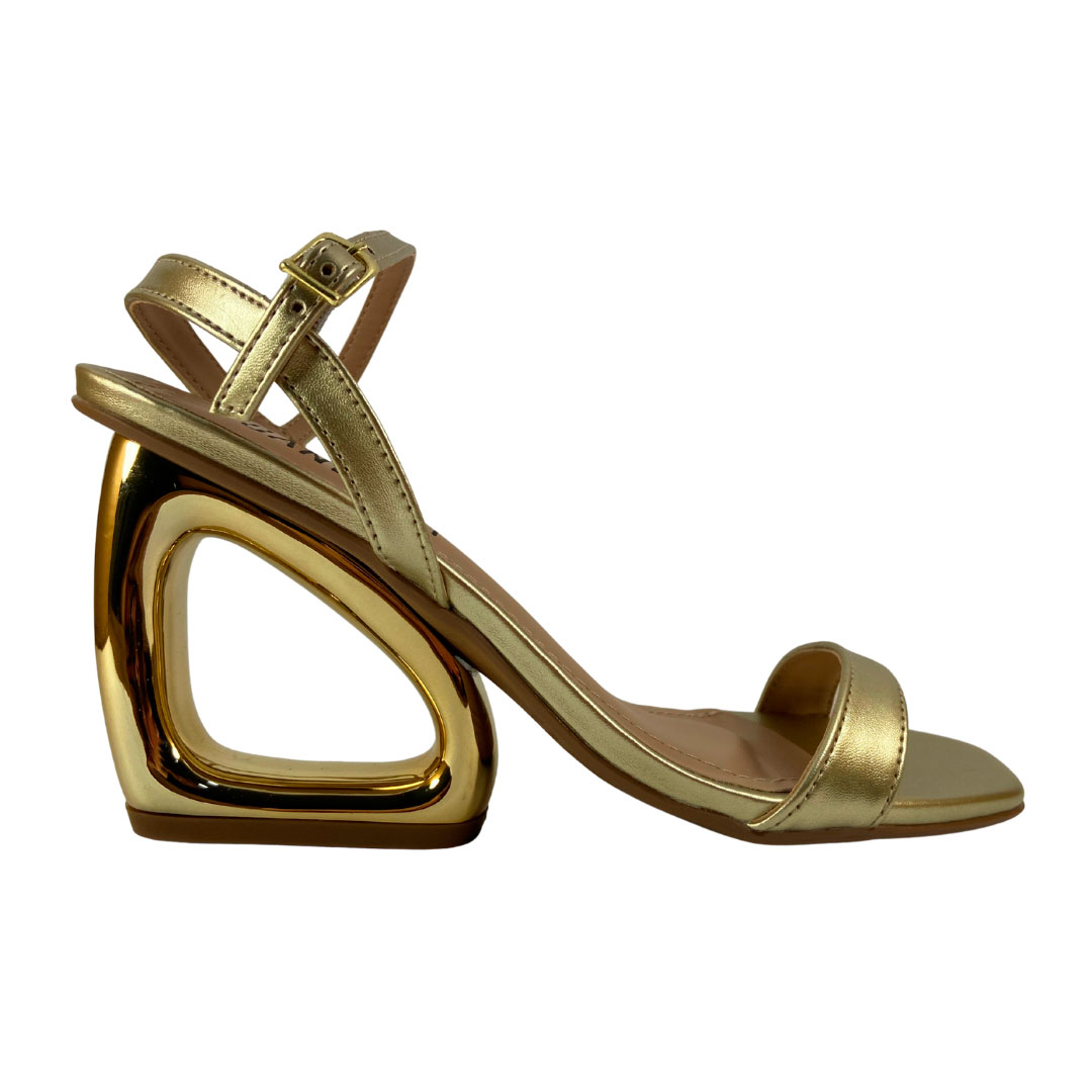 (1526-3231) Sandália Salto Geométrico Metalizado Ouro Light