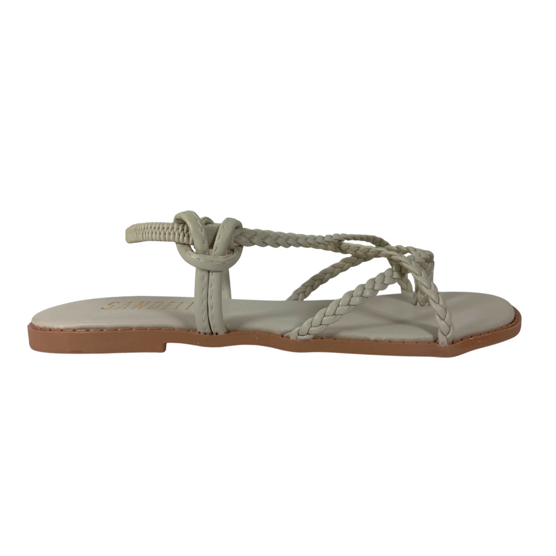 (F1711) Sandália Rasteira Tiras Trançadas Off White