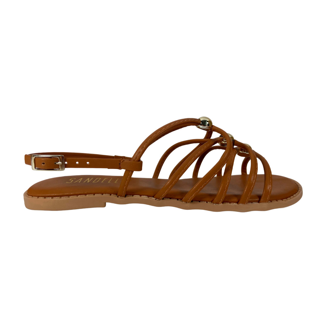 Estilosa e cheia de personalidade, essa rasteira traz um visual moderno com várias tiras finas que se cruzam sobre o peito do pé, garantindo um toque fashion e elegante. Os detalhes em esferas douradas dão um charme extra à produção, deixando o look mais sofisticado. O modelo ainda conta com tira no calcanhar e fechamento ajustável para mais firmeza e conforto no dia a dia. Ideal para compor desde looks casuais até produções mais arrumadinhas!
