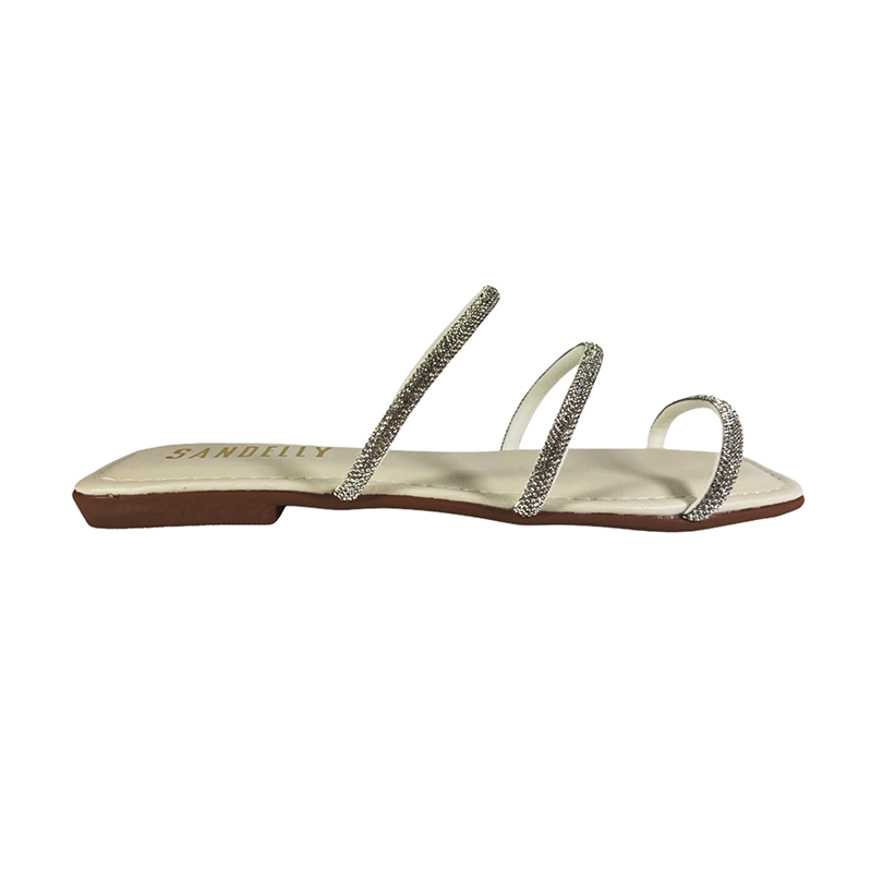 (Ff2306) Sandália Rasteira Tiras Strass Off White