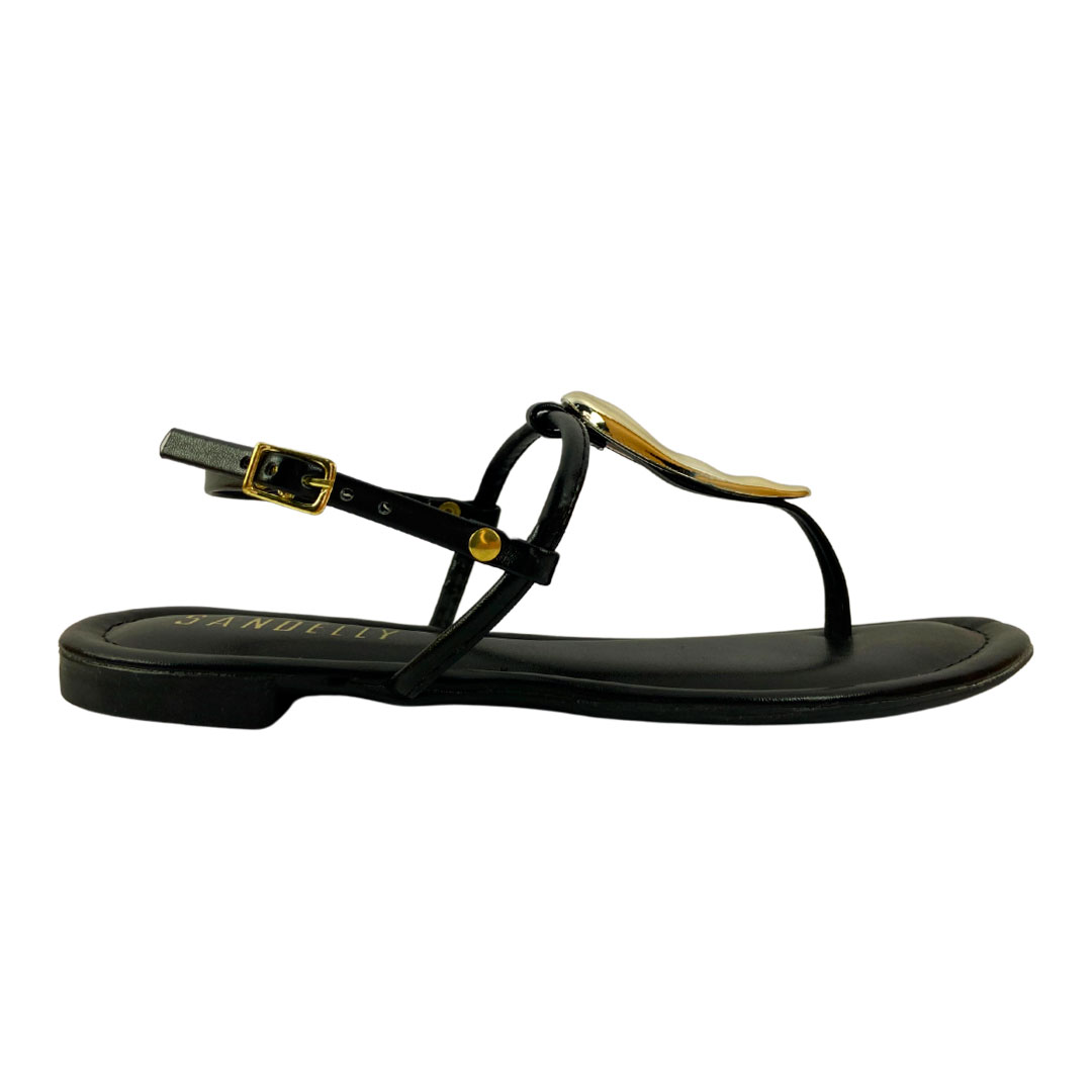 (Nara777-160) Rasteira Aplicação Metalizada Preto