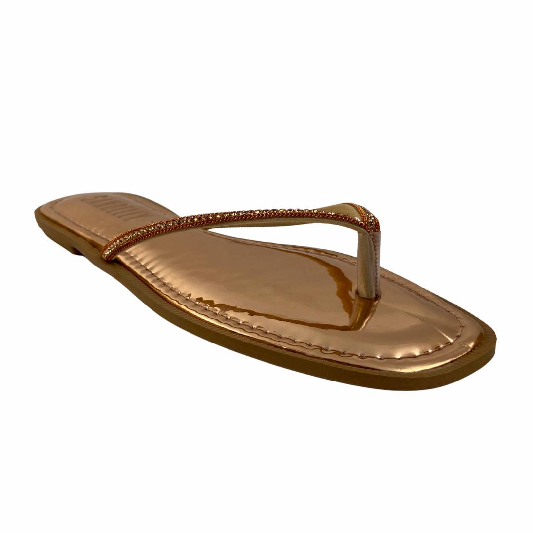 Com visual delicado e toque glamouroso, essa rasteira é perfeita para quem busca elegância e conforto no dia a dia. O modelo apresenta tiras finas em formato de V, com aplicação de strass que adiciona brilho e sofisticação na medida certa. O bico quadrado reforça o estilo moderno e versátil da peça. Ideal para compor produções leves e elegantes, é a escolha perfeita para iluminar o visual em qualquer ocasião.
