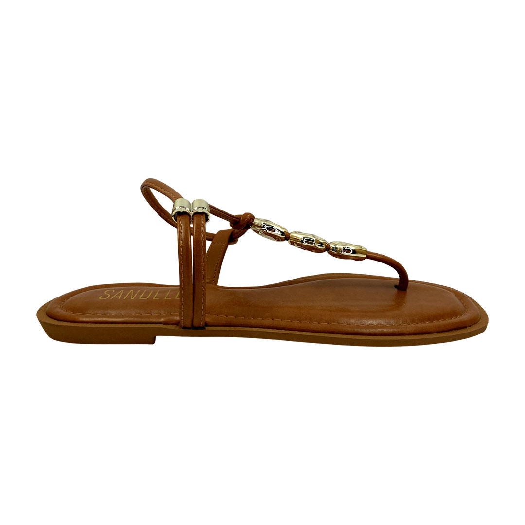(Pe2447) Rasteira Detalhes Metalizados Ambar