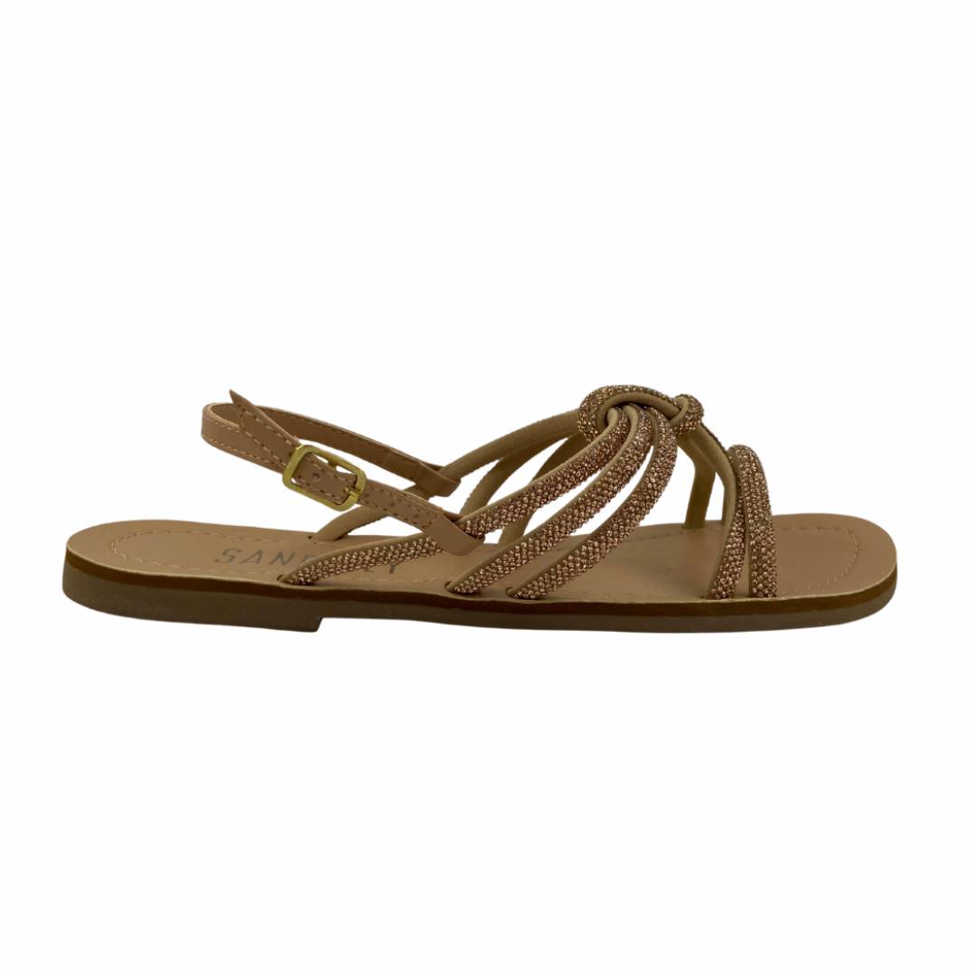 Com um visual delicado e sofisticado, essa rasteira é perfeita para quem ama brilho na medida certa sem abrir mão do conforto. O modelo traz tiras finas inteiramente aplicadas com strass, que saem entre os dedos e seguem pelo peito do pé, criando um desenho elegante e feminino. No centro, as tiras se encontram em um detalhe em enlace, que adiciona charme e um toque moderno ao design. A parte traseira conta com tira fina envolvendo o calcanhar, proporcionando melhor ajuste aos pés, além de fecho lateral em fivela metálica, que garante segurança e praticidade ao calçar. Versátil e cheia de estilo, é a escolha ideal para compor produções que vão do dia a dia a ocasiões especiais, iluminando o look com sutileza e elegância.