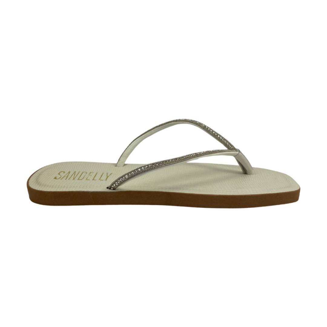 (Rv2416) Chinelo Tira Pedras Brilhosas Off White